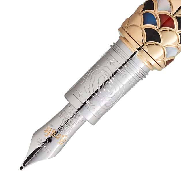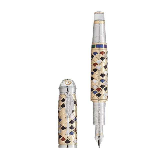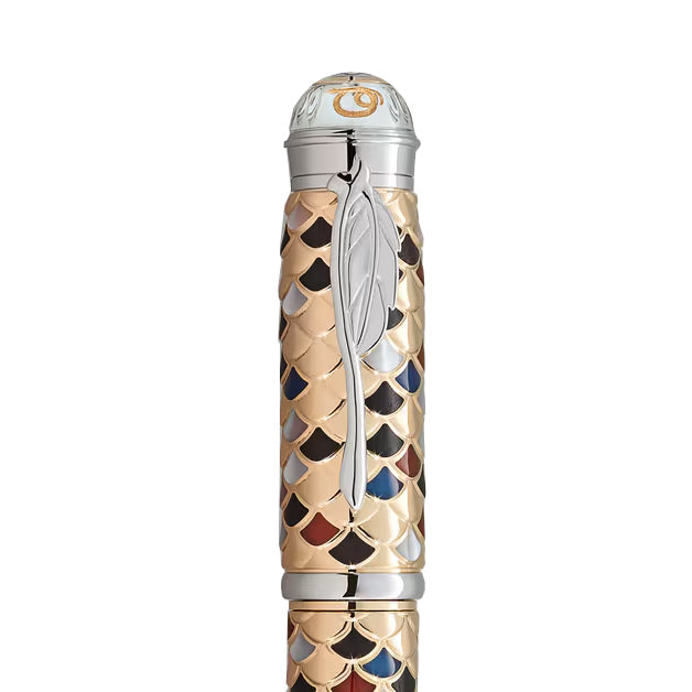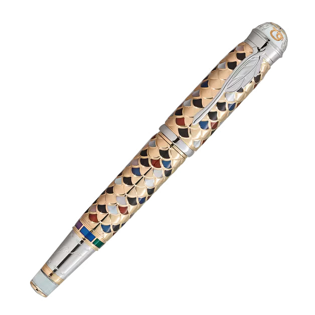 Au centre de l'éveil intellectuel du XVIIIe siècle, les écrits d’un homme en particulier ont su résister à l'épreuve du temps : ceux de Johann Wolfgang von Goethe. Polymathe, géant de la littérature allemande, avocat, ministre, directeur de théâtre ainsi que prodigieux collectionneur et naturaliste, il était à tous égards un révolutionnaire, désireux de repousser les limites de la perception et de l'apprentissage. La profondeur philosophique de « Faust », la subtilité lyrique de sa poésie et l'étendue de l'exploration scientifique derrière sa théorie des couleurs et ses traités de botanique ont eu une importance historique et témoignent, par leur variété et leur influence considérable, du génie de Goethe. Poète et homme d'État, conseiller, ami et amant, il a laissé une empreinte indélébile sur le monde qui l'entourait et reste aujourd'hui encore une source d'inspiration et de vision. Avec le soutien de la Klassik Stiftung Weimar et du musée national Goethe qu'elle abrite, Montblanc dédie son édition Writers Edition Hommage à Johann Wolfgang von Goethe Limited Edition 8 à ce génie universel, en mettant l'accent sur ses réalisations en tant que scientifique. La silhouette historique de l'édition s'inspire de l'instrument d'écriture prisé de Goethe, avec lequel il a couché sur le papier toutes ses connaissances, ses idées et les fruits de son imagination poétique apparemment sans limites. L'écriture était sa raison d'être. La plus grande édition de ses œuvres et écrits comprend aujourd'hui 40 volumes, contenant environ 3 000 poèmes. Son drame Götz von Berlichingen a été publié anonymement en 1773, mais un an plus tard, Les Souffrances du jeune Werther, écrit en moins de quatre semaines, a propulsé le jeune avocat de 25 ans vers la célébrité du jour au lendemain. Sa réputation ne passe pas inaperçue à Weimar, où il n'est plus seulement considéré comme un poète et un philosophe de renom, mais aussi comme un homme d'État et un réformateur de l'économie et de la finance. Mais Goethe n'est pas disposé à faire des compromis pour concilier ses rôles de poète et d'homme politique. Insatisfait en raison d'un sentiment de stagnation créative, il décide d'entreprendre un tour d'Italie en 1786 - incognito. C'est là qu'il a ressenti un nouveau sentiment de liberté spirituelle, différent de tout ce qu'il avait connu dans son pays. Il découvre les trésors antiques de Rome et des phénomènes naturels qu'il ignorait jusqu'alors. Au cours de son voyage de 18 mois, qu'il décrira plus tard dans son Voyage en Italie, Goethe escalada plusieurs fois le Vésuve, un volcan encore actif, et collecta de nombreux objets pour ses études sur la nature, dont une pomme de pin qu'il conserva à la fois comme une merveille de la nature elle-même et comme un rappel de l'antique pomme de pin en bronze de quatre mètres de haut qui se trouve au Vatican. La beauté modeste et l'harmonie de sa forme naturelle sont étonnamment évoquées dans cette édition, puisque le capuchon et le corps sont légèrement effilés. La similitude est renforcée par le squelette fraisé dans l'or massif au 750/1000. Avec une habileté consommée, les maîtres artisans de Montblanc ont inséré des incrustations de bois d'ébène, de nacre blanche et rose, de laque de lapis et de laque de jaspe dans le squelette pour symboliser la riche collection de minéraux et de pierres de Goethe. L'un des projets les plus ambitieux de Goethe a été son Traité des couleurs, publié en 1810. Dans ses quelque 1300 pages, il a examiné le phénomène de la couleur d'une manière qui diffère fondamentalement des pratiques établies. Adoptant une approche interdisciplinaire, il a abordé un large éventail de sujets, de la physique à la psychologie des couleurs, ouvrant une perspective entièrement nouvelle sur l'essence de la couleur. Il était convaincu que les couleurs n'existaient que dans l'esprit de celui qui les regardait et qu'elles exerçaient une influence considérable sur les émotions de cet individu. Le Traité des couleurs de Goethe est représenté non seulement dans le schéma général des couleurs de l'instrument d'écriture, mais aussi dans la bande d'incrustations en laque qui entoure le cône, avec des couleurs inspirées de celles que Goethe a observées au cours de ses expériences avec des prismes de verre. Ses recherches empiriques dans le domaine de l'optique sont également mises à l'honneur dans le cristal de roche incrusté entre des anneaux d'or à l'extrémité conique du cône portant sa signature gravée. Le fond du cône est en granit, l'une des roches les plus dures connues de l'homme et la substance la plus prisée par Goethe comme preuve de l'origine de la planète. Comme le cône, le sommet du capuchon en forme de dôme est fait de cristal de roche encadré d'or et couronné par l'emblème Montblanc gravé à la main ainsi que par un serpent d'or peint à la main. Le motif du serpent enroulé rappelle les verres à boire commandés par Goethe à Karlsbad, avec lesquels il démontrait les effets étonnants de la couleur. La forme légèrement incurvée du capuchon, qui ressemble à un bocal en verre de chimiste des siècles derniers, est un hommage aux réalisations de Goethe en tant que scientifique et collectionneur. L'agrafe en forme de feuille rend hommage à ses études dans le domaine de la morphologie et plus particulièrement à sa proposition d'une forme végétale archétypale. Il a même transposé cette idée en vers dans son poème d'amour didactique « La métamorphose des plantes ». Goethe lui-même a fait l'éloge d'une série de lithographies du peintre Eugène Delacroix, commandées pour illustrer la traduction française de l'œuvre. Sa représentation de Faust dans son cabinet de travail est reprise dans une scène élaborée gravée en relief sur la plume en or massif au 750/1000, tandis que la gravure de lignes 
