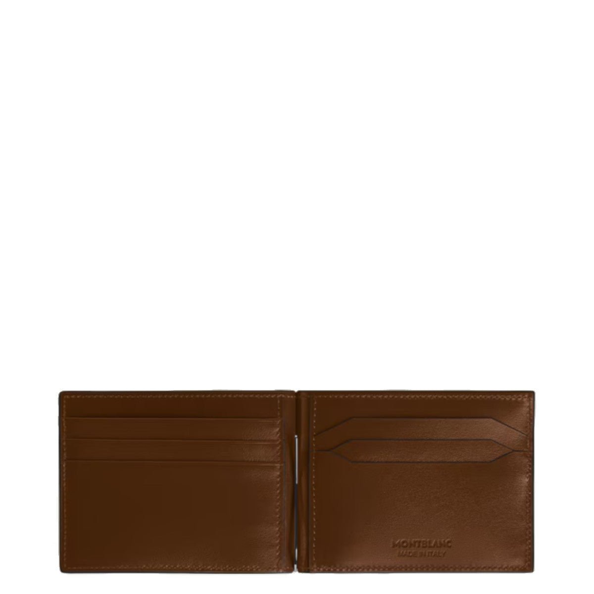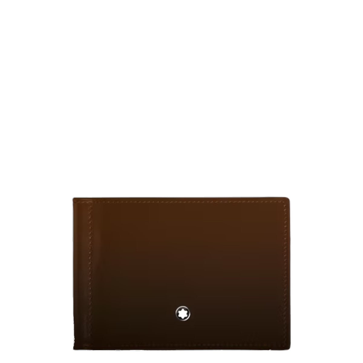 Ce portefeuille fin à deux volets revisite le design traditionnel dans une version sophistiquée. Fabriqué en cuir Meisterstück marron lisse, rehaussé d'un effet sfumato appliqué à la main, il est doté d'une élégante pince à billets en métal et de six fentes pour cartes de crédit, offrant ainsi une organisation élégante au quotidien pour les plus exigeants.