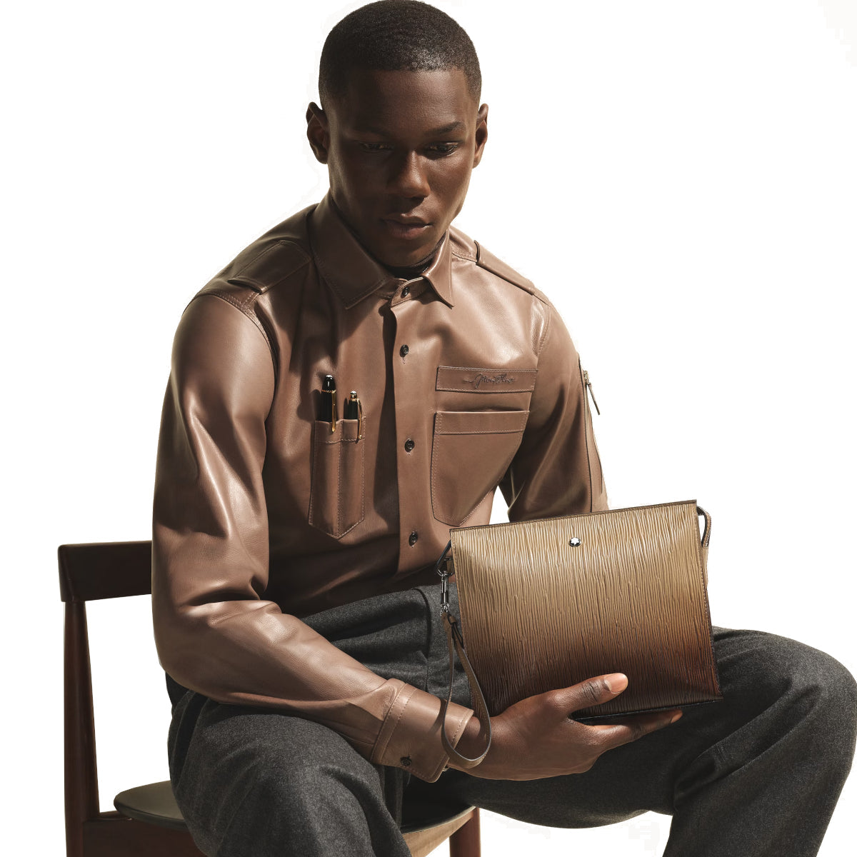 Transportez vos essentiels quotidiens avec style grâce à cette pochette sophistiquée inspirée de la forme d'une enveloppe, en hommage à l'héritage de Montblanc en matière d'écriture. Fabriquée en cuir Corteccia sable, son motif inspiré de l'écorce est rehaussé d'un ombrage appliqué à la main. Son compartiment principal spacieux est doté d'une poche ouverte supplémentaire pour plus de commodité et de deux pattes pour instruments d'écriture. Polyvalente et raffinée, elle se porte à la main, sous le bras ou autour du poignet grâce à sa lanière amovible.