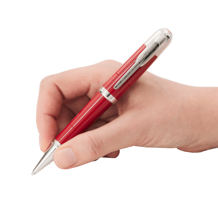 En 2021, Montblanc rend hommage au visionnaire Enzo Ferrari : à la fois pilote automobile et entrepreneur, il a fondé la légendaire Scuderia Ferrari et créé un empire automobile mondial dont le nom est devenu synonyme de qualité d’exception et de passion pour la vitesse. Fabriquée en résine précieuse rouge, l’édition symbolise la naissance de la passion d’Enzo Ferrari pour la course automobile. Sa couleur s’inspire de la couleur unique « Rosso 70 Anni », un rouge spécialement conçu à l’occasion du 70e anniversaire de la Scuderia Ferrari, et qui représente différents rouges emblématiques au fil des ans. Le sommet du capuchon est surmonté de l’emblème Montblanc incrusté dans un ouvrage métallique sur une surface jaune qui rend hommage à sa ville natale, Modène. Le dos du capuchon est orné du cheval cabré, emblème célèbre des voitures Ferrari. L’agrafe en métal est ornée d’une célèbre citation d’Enzo Ferrari : « On ne peut pas décrire la passion, on peut seulement la vivre. » Le cône arbore deux dates importantes du début de la carrière d’Enzo Ferrari.