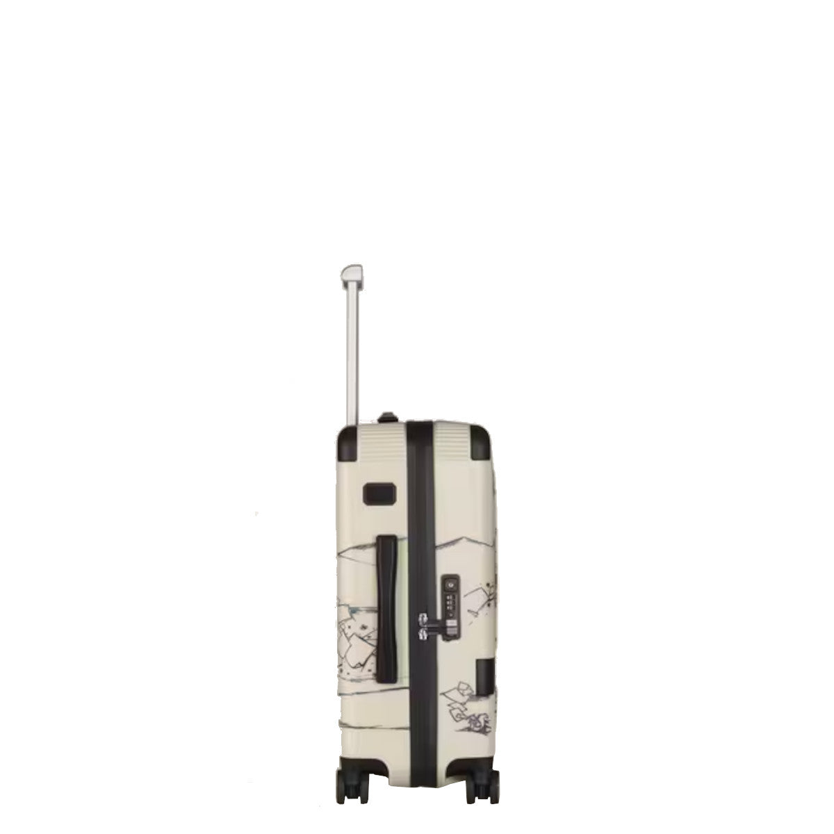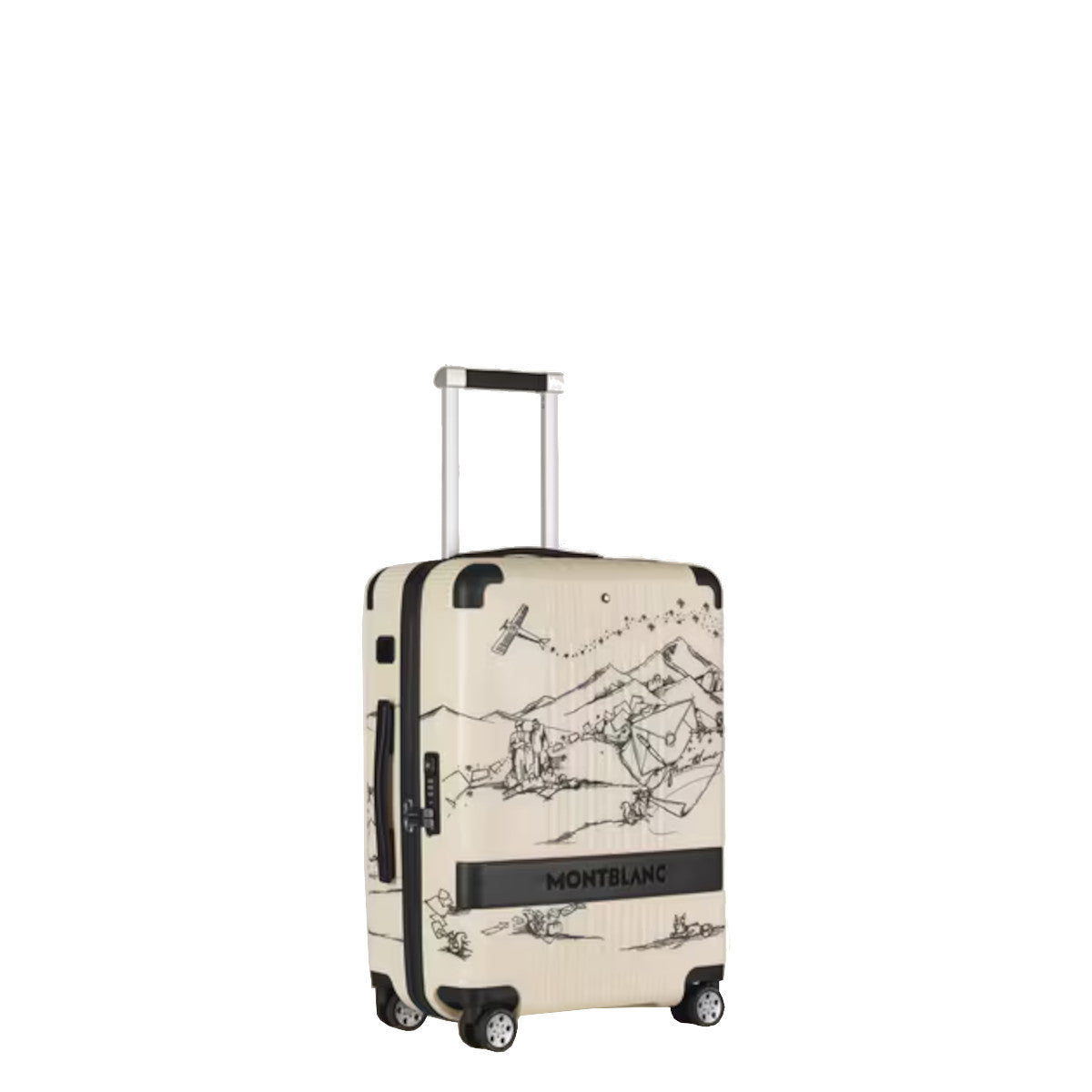 Notre valise à roulettes Happy Holidays est un compagnon de voyage élégant pour le voyageur moderne. Fabriquée en polycarbonate haute performance avec des détails en cuir noir, cette valise à roulettes allie durabilité et style sophistiqué. Ornée d'une scène hivernale au Mont Blanc, une technique de sérigraphie représente le voyage de l'écriture à travers des papiers et des enveloppes tourbillonnants, le Meisterstück, des sacs de voyage et bien plus encore. L'intérieur comprend deux compartiments principaux pour un rangement organisé, avec des bandes élastiques d'un côté et un filet noir de l'autre. Avec ses dimensions de 38 x 55 x 23 cm, elle répond souvent aux critères des bagages à main. Les restrictions liées aux bagages à main et aux bagages cabine peuvent varier d'une compagnie aérienne à l’autre. Il est donc recommandé de confirmer les réglementations spécifiques de votre compagnie avant votre vol.